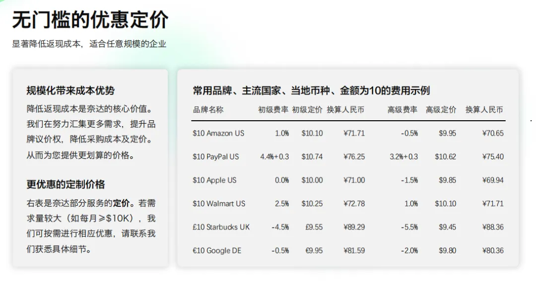 对于返现量较大的卖家,奈达也提供更灵活的定制方案。